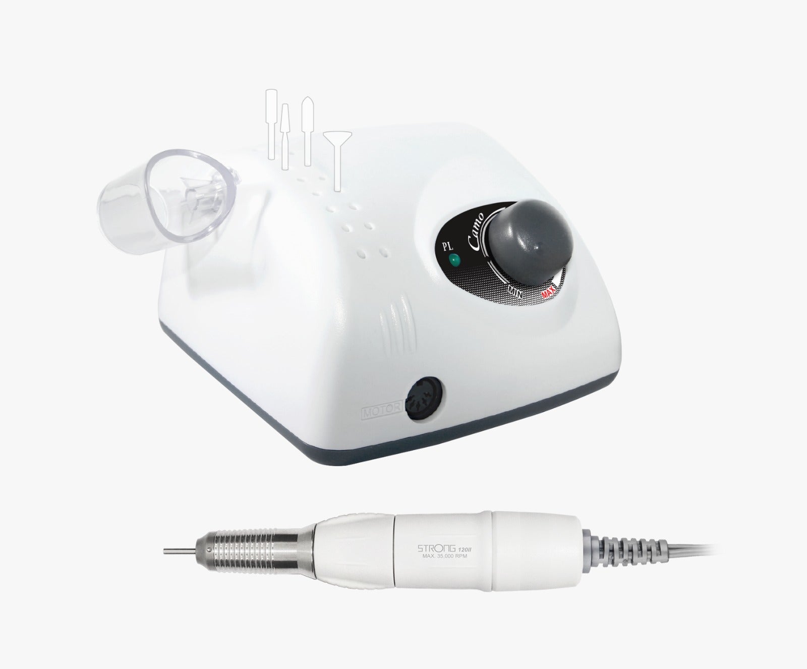El Camo es un micromotor de excelente calidad/precio, ergonómico y fácil de transportar, gracias al poco peso de su pieza de mano favorece largas jornadas de trabajo y buena precisión, poca vibración y escaso ruido.